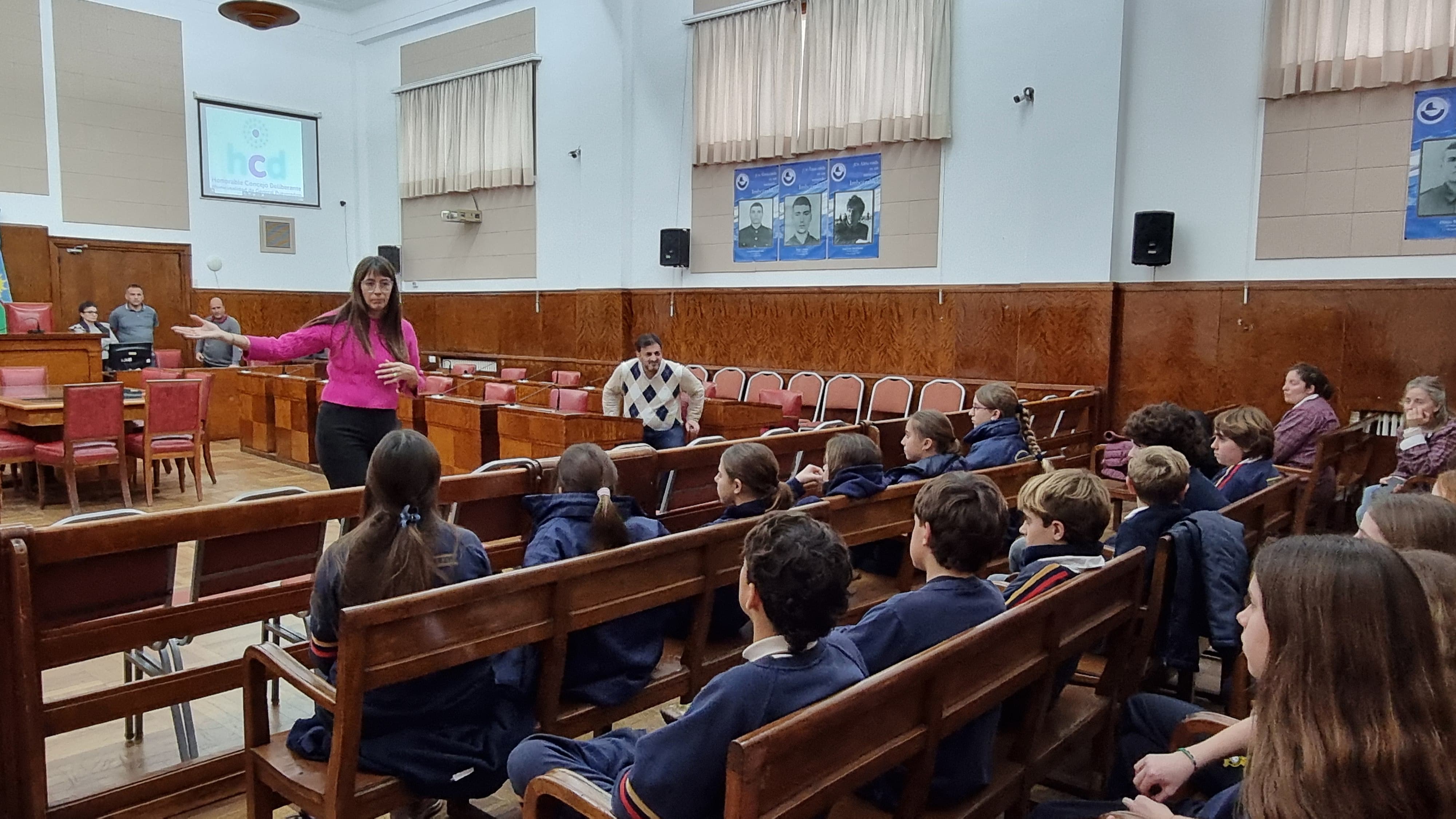 Dos profesoras y los alumnos, de 1º año, asistieron en principio a una disertación ofrecida por la concejal Marianela Romero y por el Jefe del Departamento de Actas, Referencia Legislativa y Digesto, Sebastián Méndez.