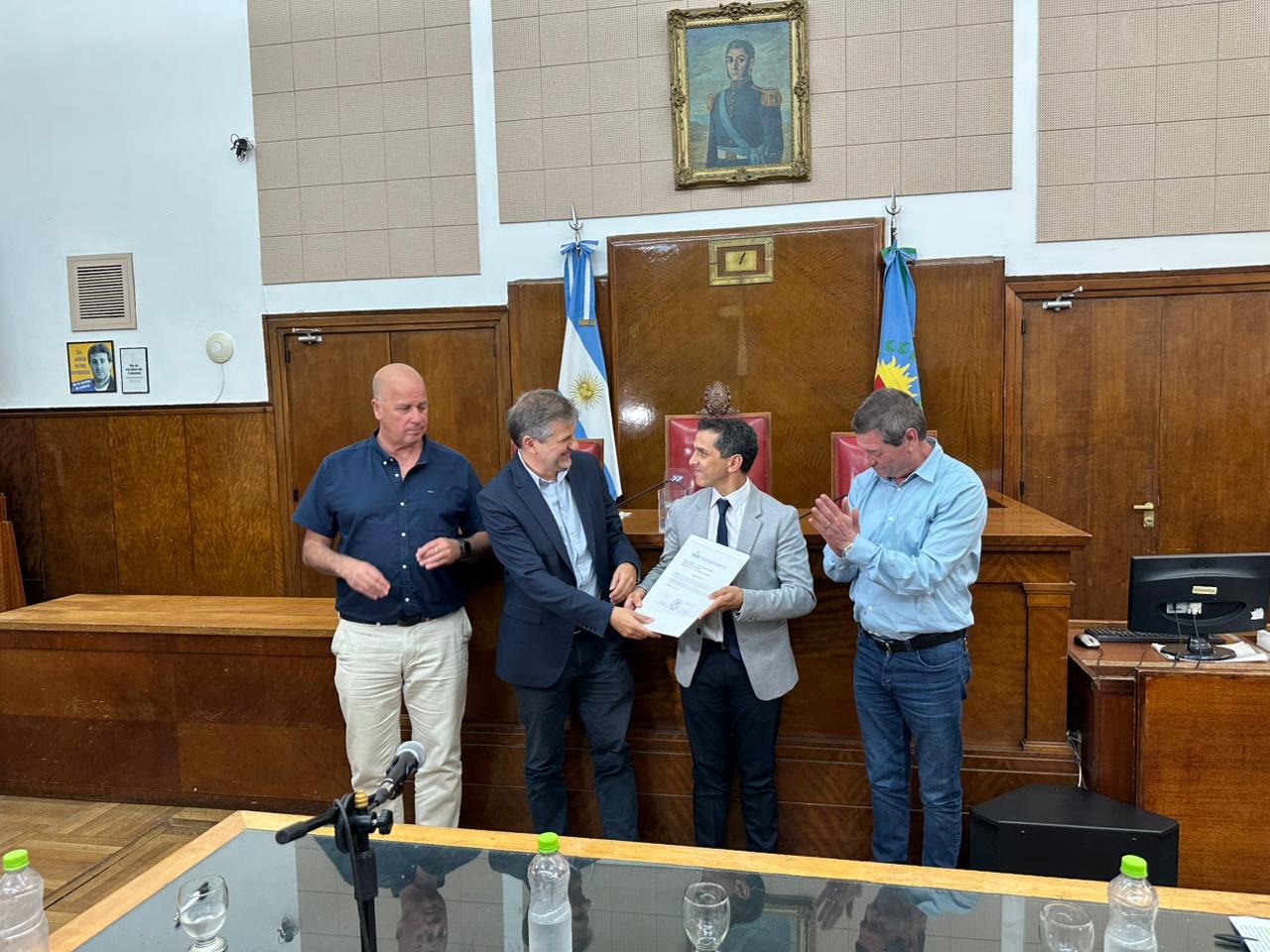 El acto administrativo se llevó a cabo por Resolución Nº 5.285/25, a partir de una iniciativa de Ariel Ciano. Recibió copia de la mencionada normativa el Dr. Diego Fernández, que estuvo acompañado por familiares, integrantes de la Fundación Mar del Plata Trasplante e integrantes del Directorio de la Clínica Pueyrredon.