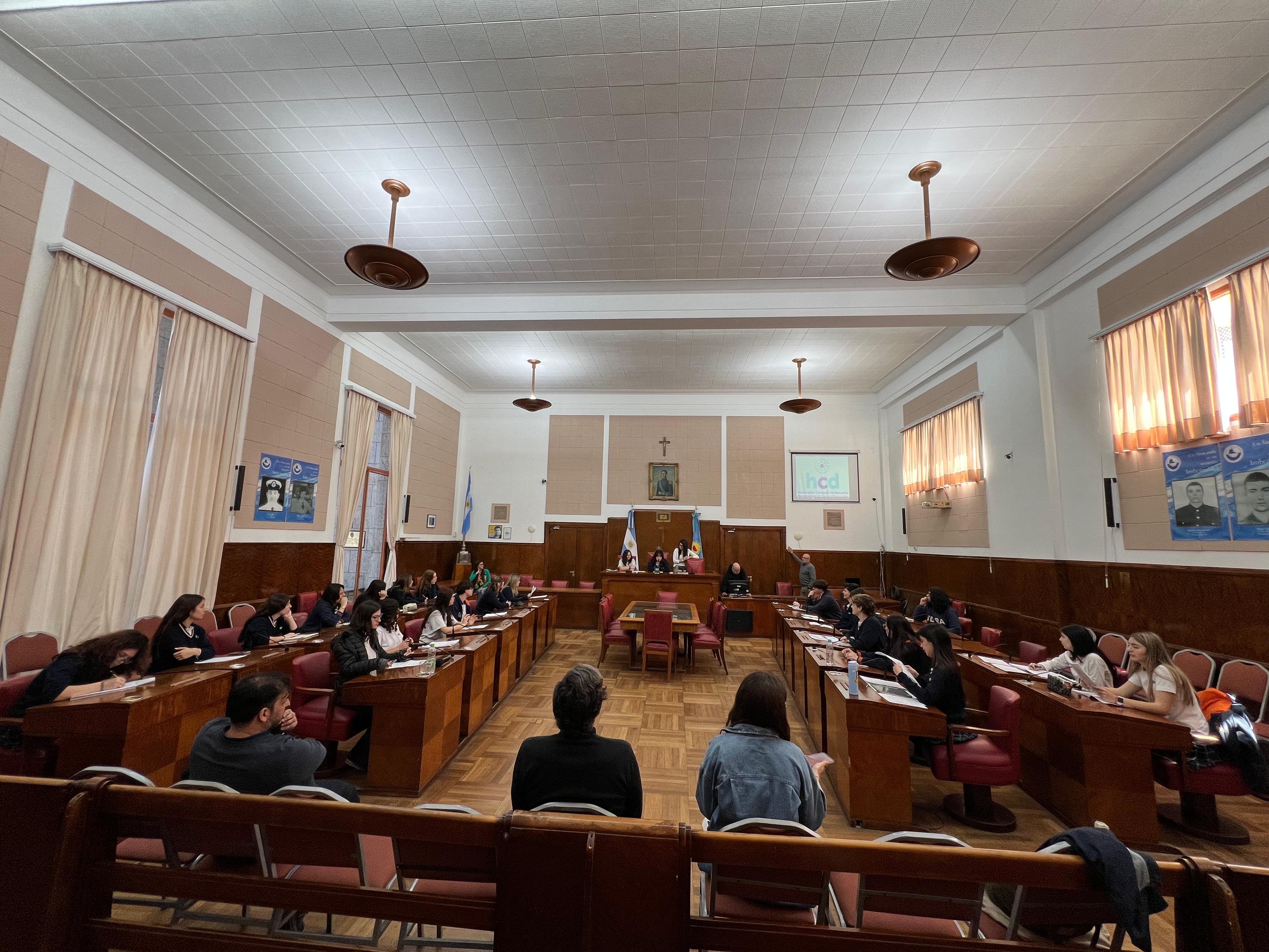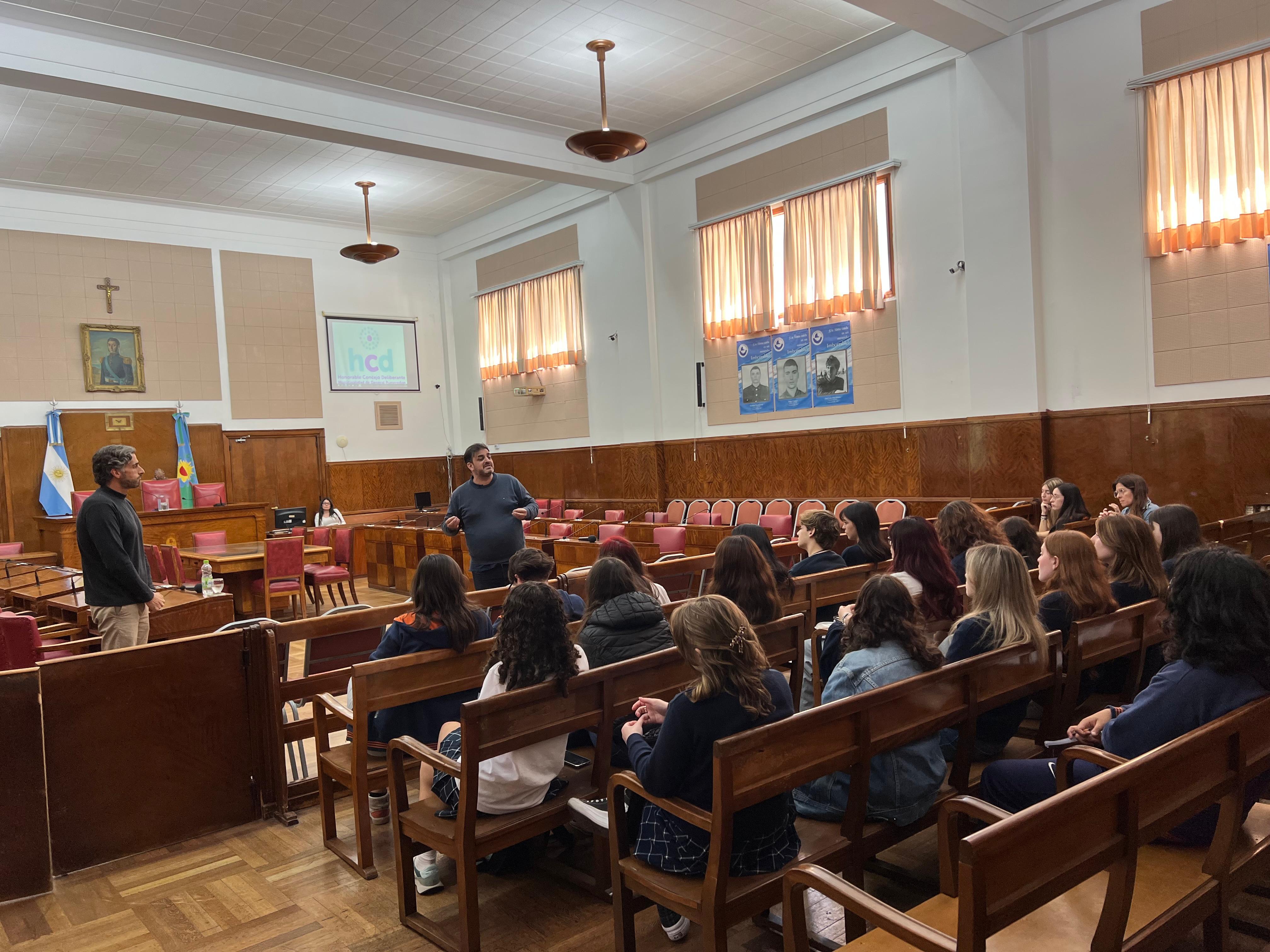 En total, 24 alumnos de 5º año, en el marco de la materia Política y Ciudadanía, asistieron al Concejo junto a la docente Victoria Godoy.