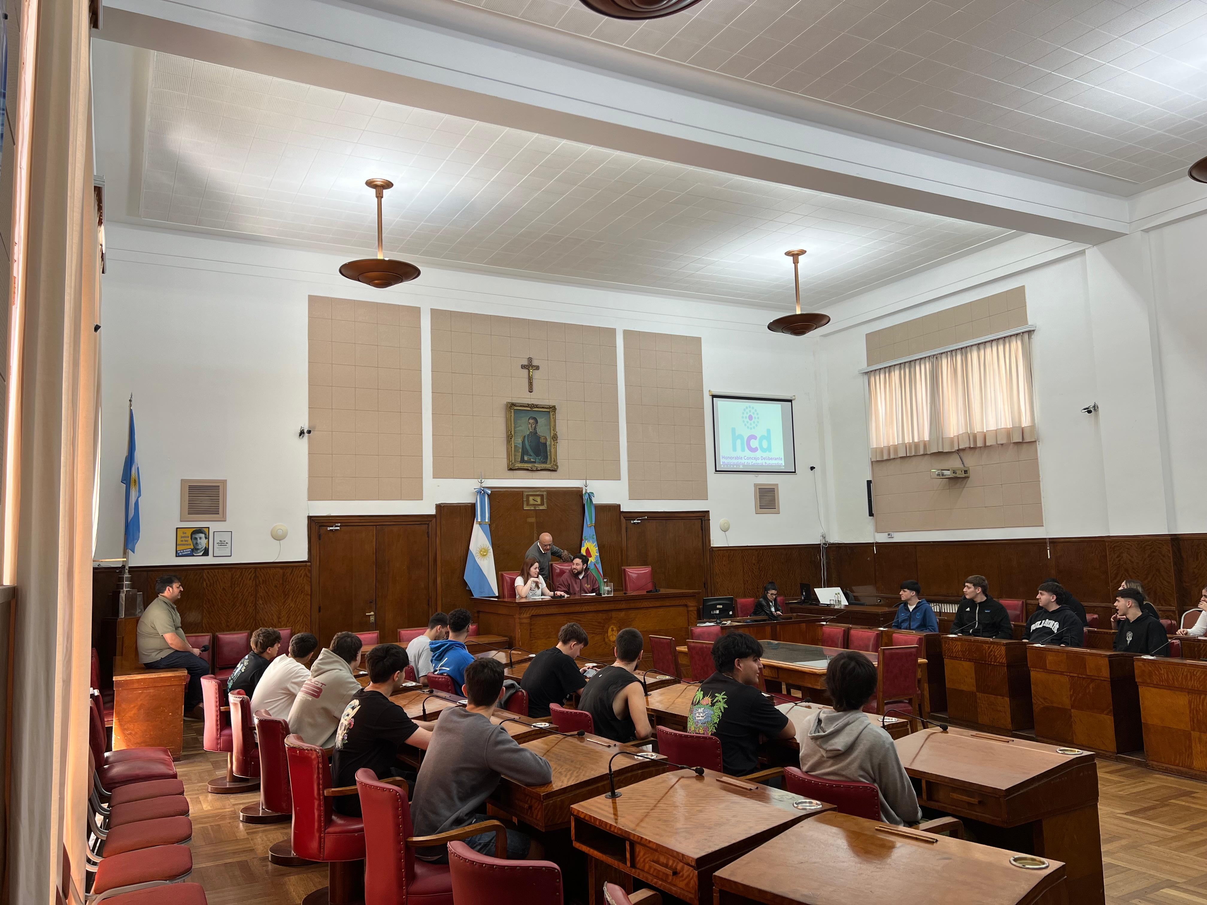 En total, 26 alumnos del 1º año, con el profesor Hernán Kloosterman, estuvieron en el recinto, donde fueron recibidos por el director de Actas, Referencia Legislativa y Digesto, Sebastián Méndez, y por la concejal Cecilia Martínez.