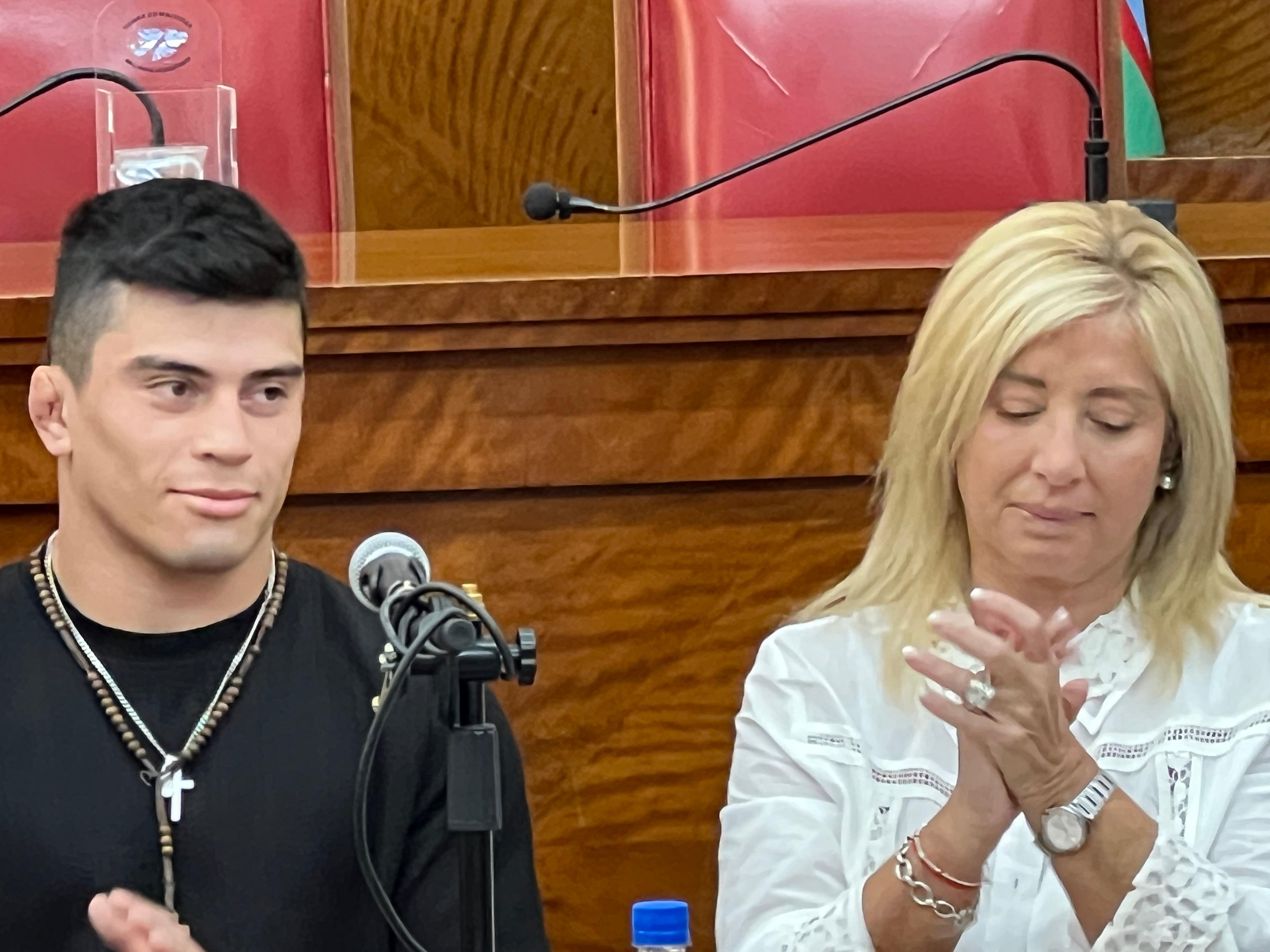 Al dar la bienvenida, Azcoitía dijo: “Buenos días, gracias por estar acá. Sabemos que es un día laboral. La distinción apunta a destacar que se llega a estas instancias como consecuencia de la disciplina, la constancia y las ganas de aprender. Todos podemos aprender de ello, porque puede aplicar a nuestras vidas. Estamos muy orgullosos de Kevin, de su formación, de su sentido de pertenencia, porque lleva sus orígenes bien alto”.