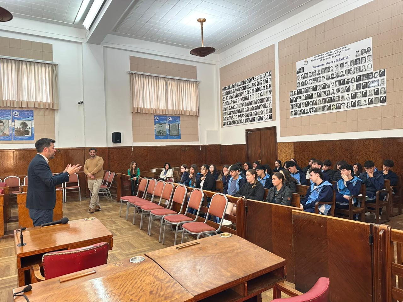 Son jóvenes de 5º año; 30 en total, que fueron recibidos por el concejal Emiliano Recalt y por el director de Actas, Referencia Legislativa y Digesto, Sebastián Méndez.