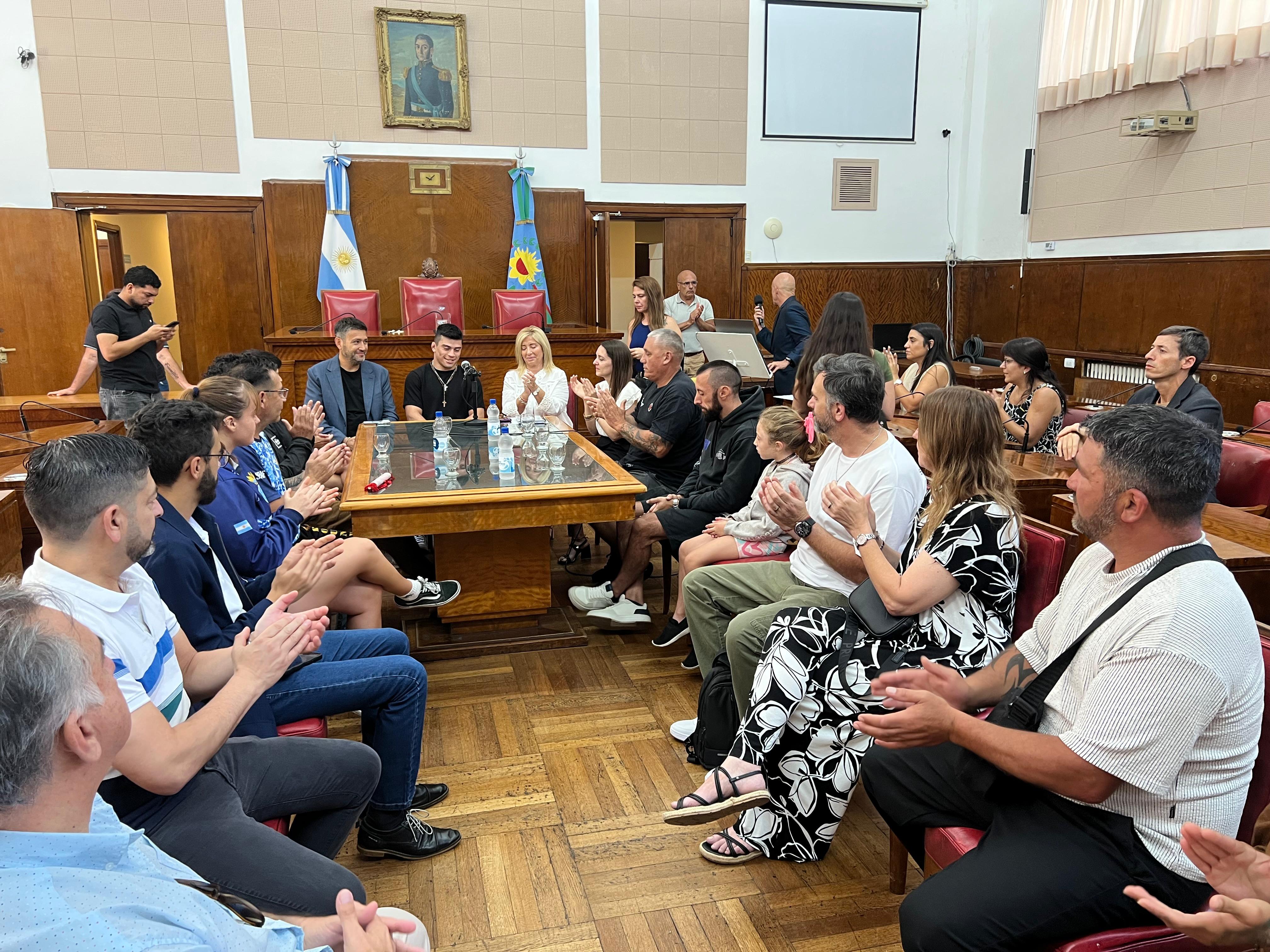 Al dar la bienvenida, Azcoitía dijo: “Buenos días, gracias por estar acá. Sabemos que es un día laboral. La distinción apunta a destacar que se llega a estas instancias como consecuencia de la disciplina, la constancia y las ganas de aprender. Todos podemos aprender de ello, porque puede aplicar a nuestras vidas. Estamos muy orgullosos de Kevin, de su formación, de su sentido de pertenencia, porque lleva sus orígenes bien alto”.