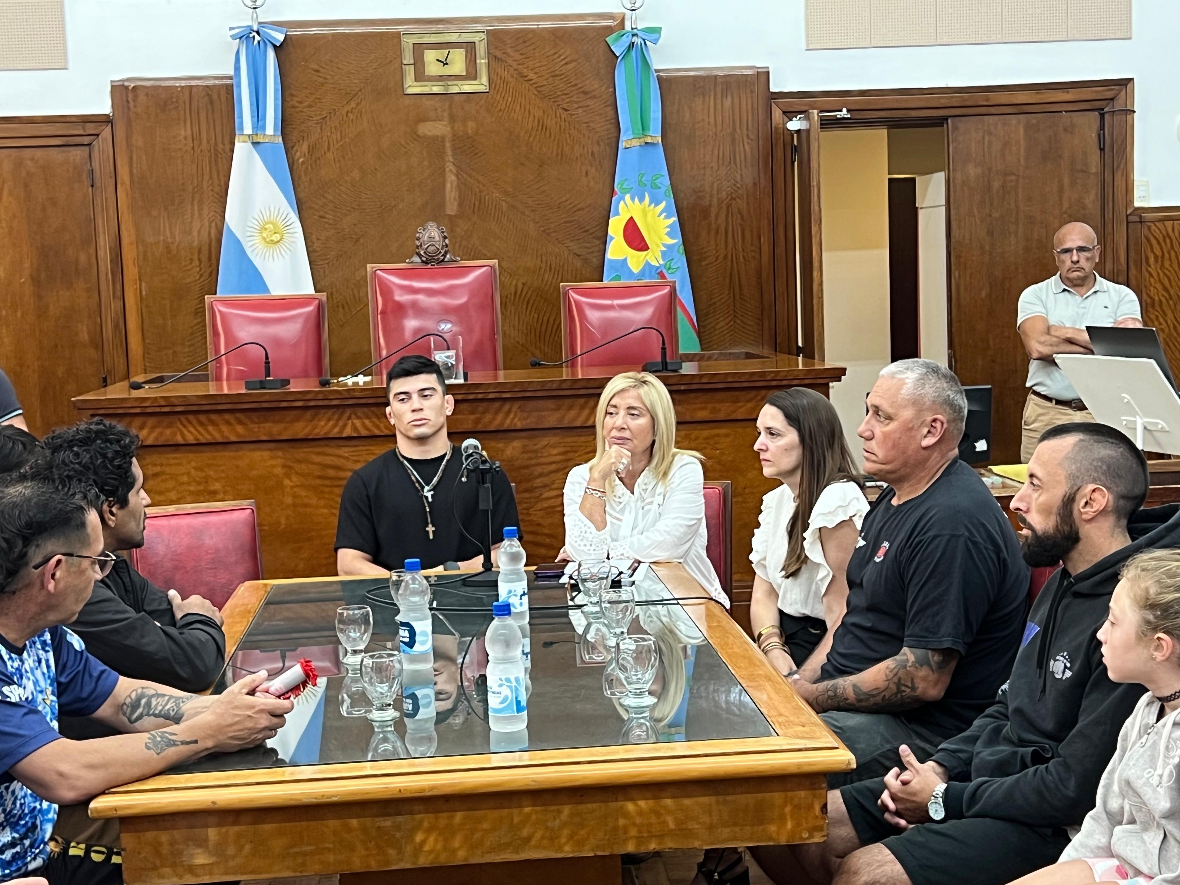 Después de que tomaran la palabra familiares, allegados y amigos y luego de recibir la distinción, Vallejos agradeció el reconocimiento y pidió: “Estoy muy contento. Es una ayuda no sólo para mí, sino para muchos chicos que llegan desde atrás. Para que vengan con más respaldo, recursos y experiencia. Ojalá haya más reconocimiento al deporte de contacto. Es un deporte hermoso; mucha gente consigue amigos y contención. Y el entrenamiento genera conductas positivas. No me olvido de dónde vengo y me siento feliz por la familia. Gracias a todos por el apoyo hacia mí y hacia quienes se están sumando”.